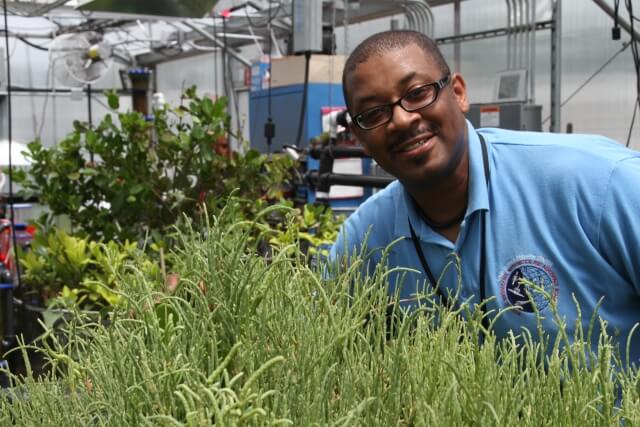 Salicornias are cheap and they love to have babies. And that’s why scientists at the Glenn Research Center are planning to use them. And so, all we have to do is basically is seed one of the tanks outside with 50 mollies, and now each one has over 300. And that lab’s been in existence since 2009, November.
