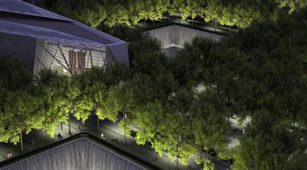 The plaza precinct itself becomes a green roof for the Memorial Museum and the train station located 70 feet underground.