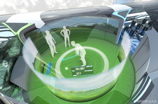 The Airbus Concept Cabin will offer personalized zones instead of the traditional cabin classes so as to offer passengers tailored levels of experiences. According to the company’s official website “While taking a hop between destinations… passengers in 2050 could join an interactive conference; enjoy a game of virtual golf; read the kids back home a bedtime story; and recharge in a ‘vitalising seat’ whilst watching the planet spread out beneath their feet.”